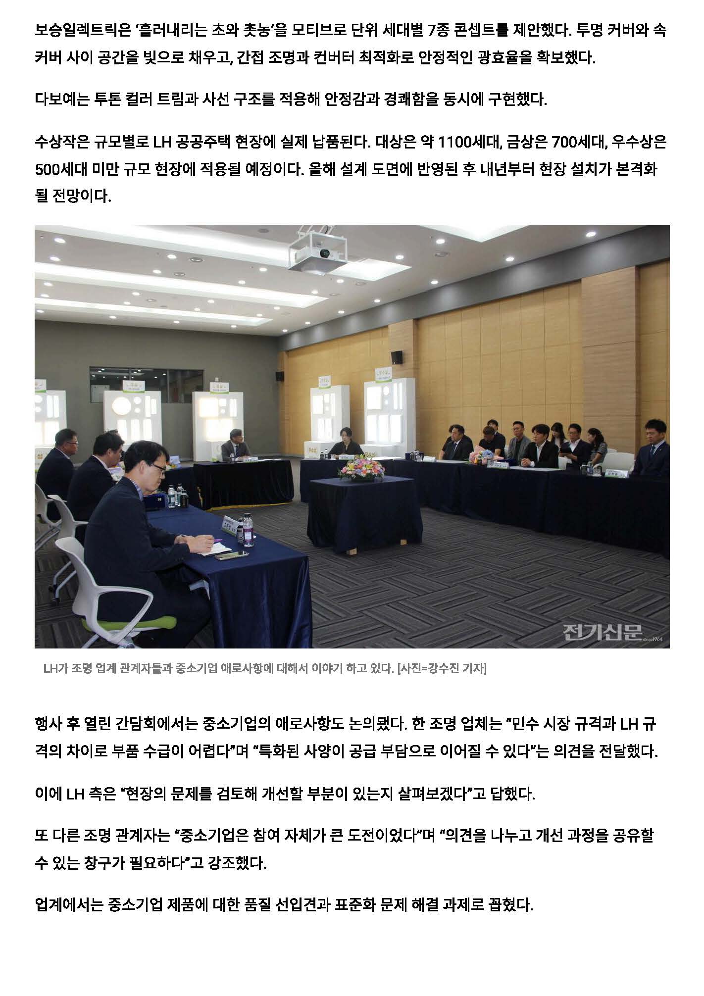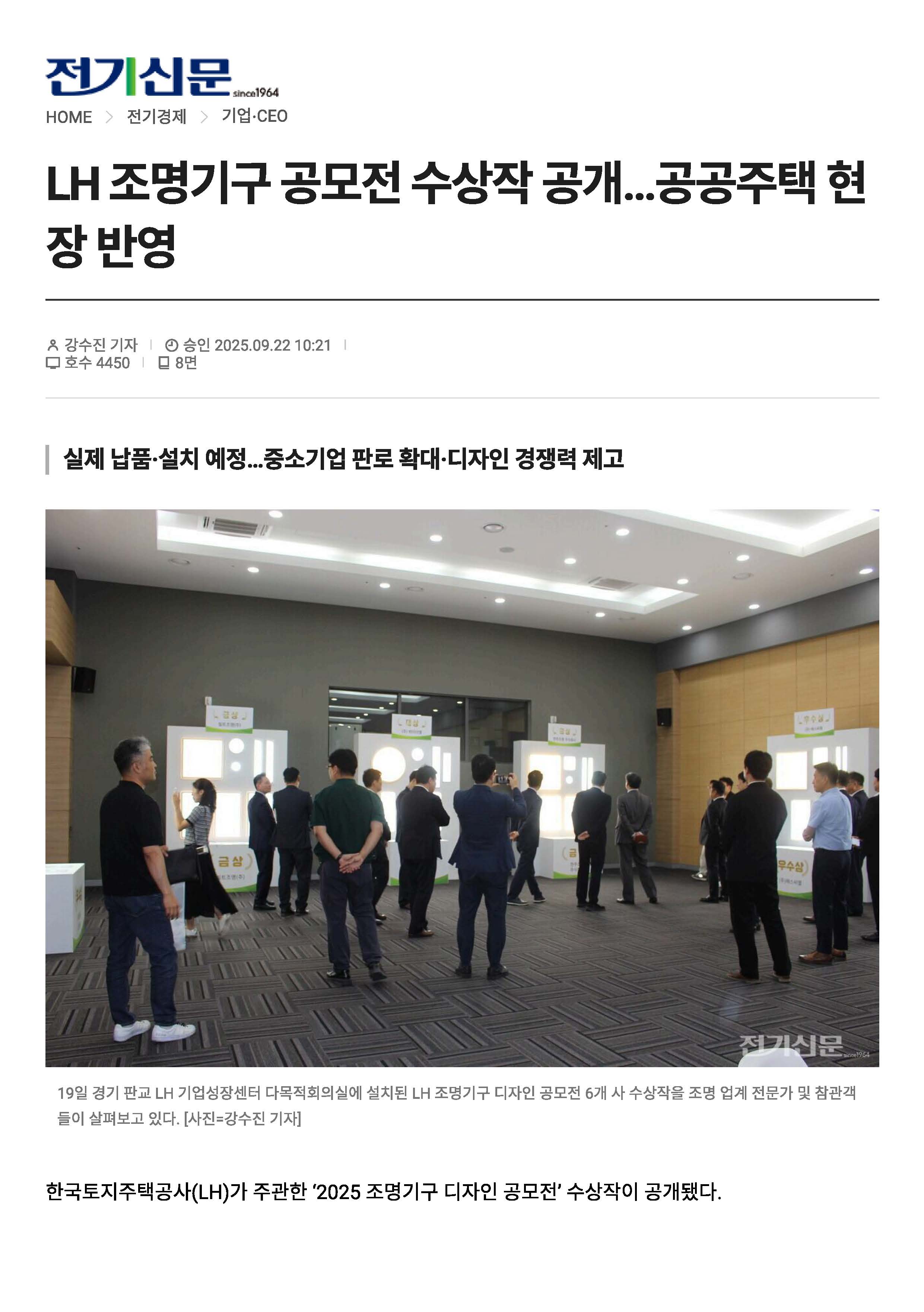 보도기사_LH 조명기구 공모전 수상작 공개...공공주택 현장 반영