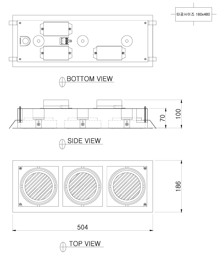 | 사이즈 | 504 x 186 x H.100(mm) / 타공 480 x 160 |