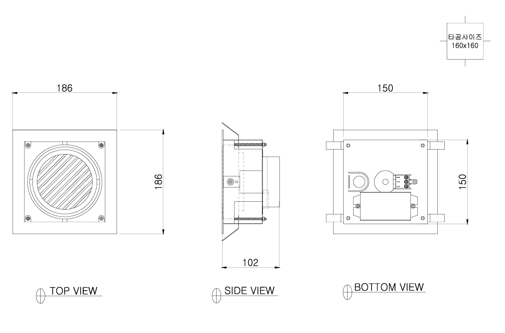 | 사이즈 | 186 x 186 x H.102(mm) / 타공 160 x 160 |