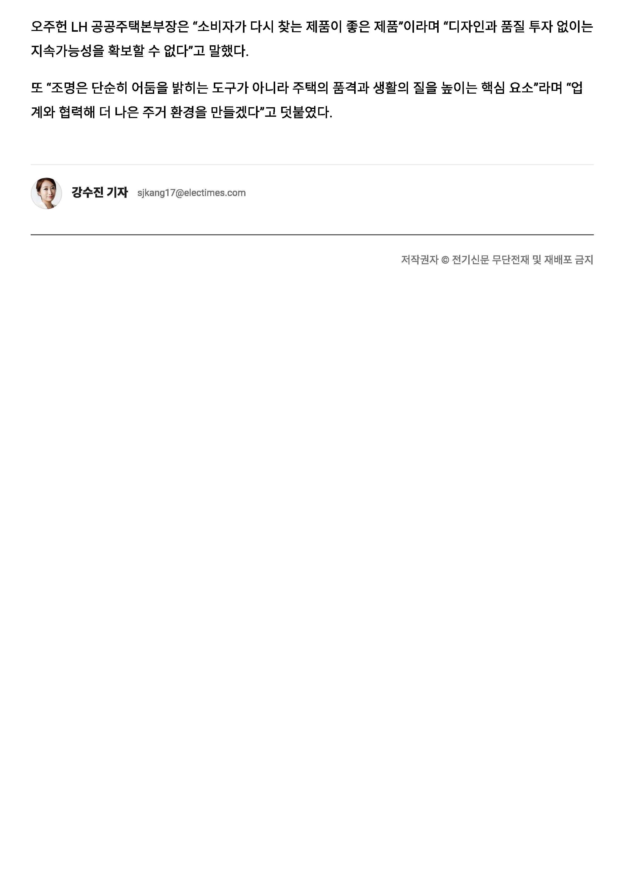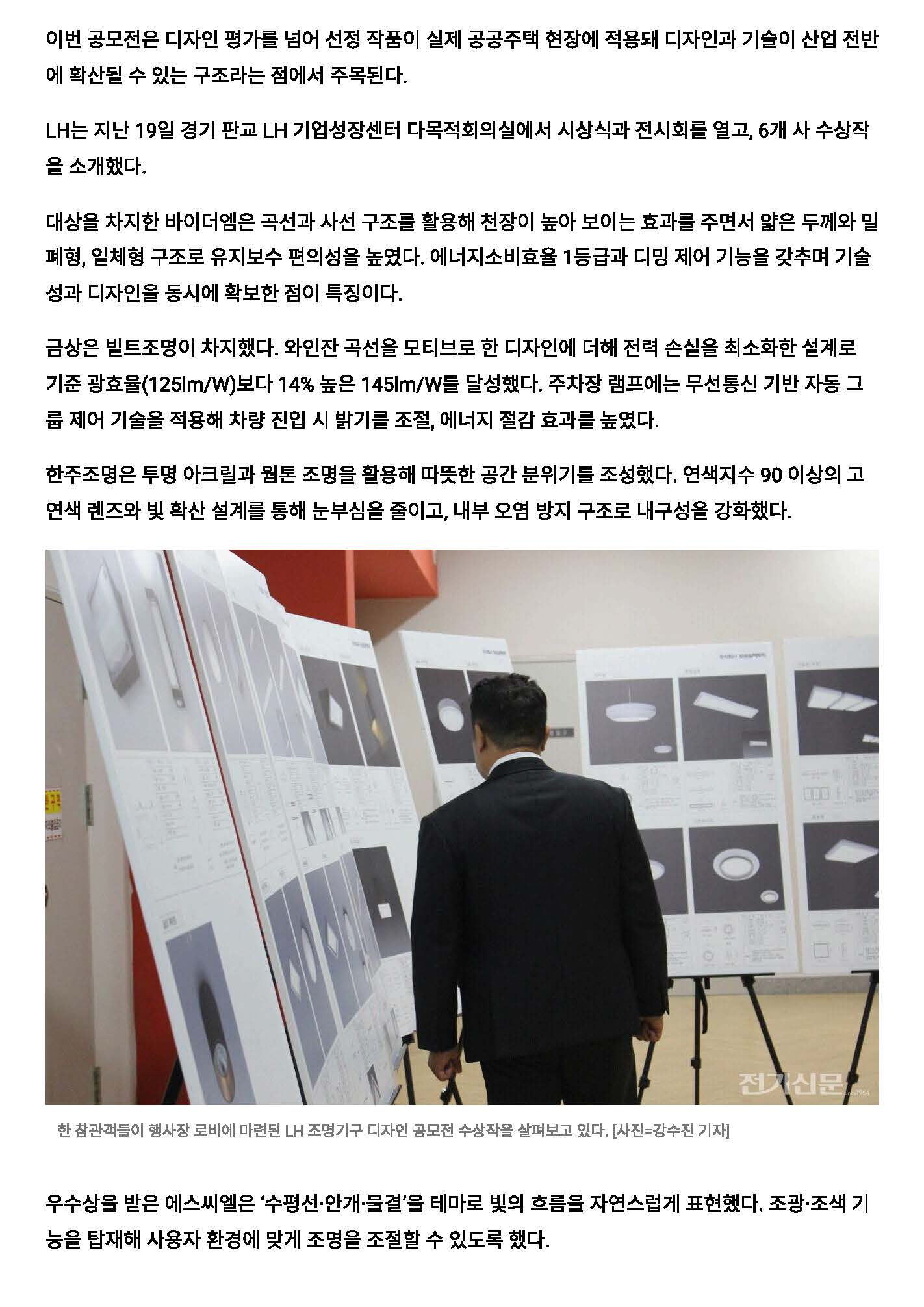 보도기사_LH 조명기구 공모전 수상작 공개...공공주택 현장 반영